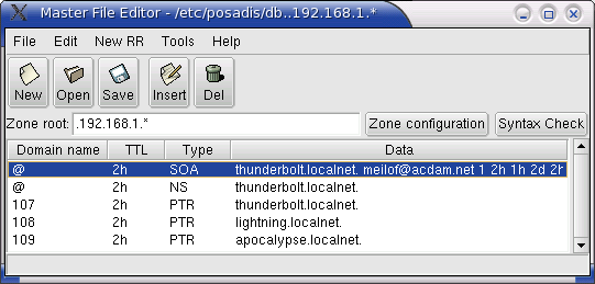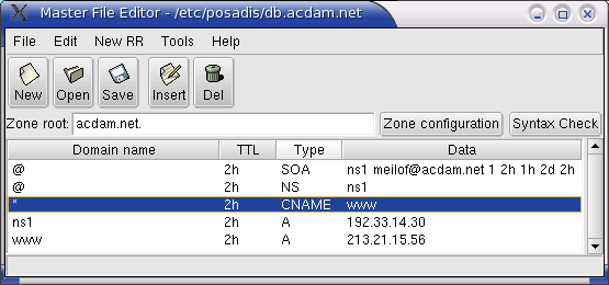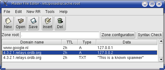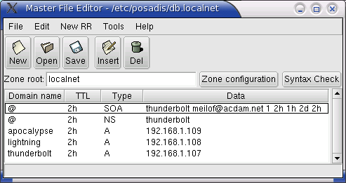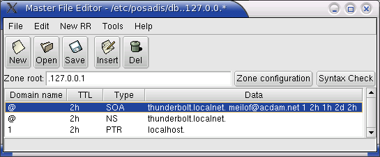 If you want to become a primary master for some zones, you can optionally get Mfedit, the Posadis Master File Editor, a graphical tool to edit DNS master files. This tool can really make editing master files much easier and error-proof. It contains a built-in syntax checker and has context help about how to set up DNS data.