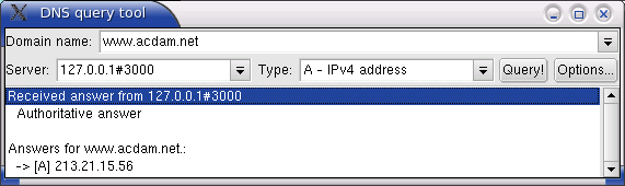 Finally, an important diagnostic utility for use with DNS is a DNS query program. Posadis contains a command-line driven tool called posask which you can use, but if you want something graphical, you can use Dnsquery.